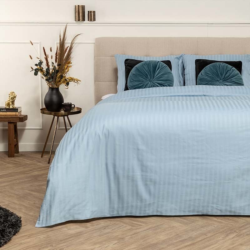 Dekbedovertrek Satijnstreep - Tweepersoons (200x200 cm) - Blauw Katoen-satijn - Dessin: Strepen - Presence - Dekbed-Discounter.nl