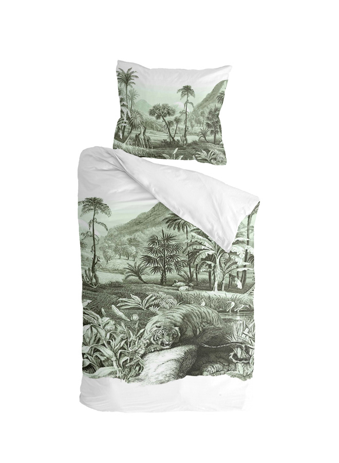 Durf jij deze tijger door jouw slaapkamer te laten sluipen? Waan jezelf in de jungle met het Go Tiger dekbedovertrek. Door de uitvoering in jade op een witte ondergrond krijgt het overtrek een rustige uitstraling. Gemaakt van 100% katoen een natuurlijk materiaal dat ademt en vocht absorbeert.