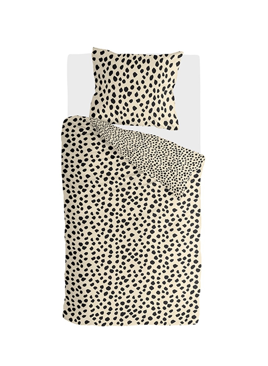 Ga helemaal los en tover je slaapkamer om tot een ware jungle met dekbedovertrek Go Wild. Een zwarte panterprint op een vanillekleurige ondergrond. Leuk detail: je kunt afwisselen tussen de fijne of de grove print bovenop. Gemaakt van 100% katoen een natuurlijk materiaal dat ademt en vocht absorbeert.