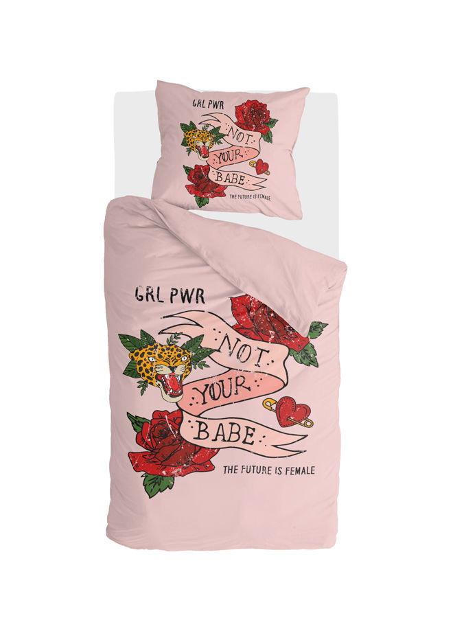 Rock and Roll met een vrouwelijke touch! Met dit stoere roze dekbedovertrek laat je jouw girl power spreken. Gei?nspireerd op de tattoos van nu maar dan in de vorm van een dekbedovertrek. Gemaakt van 100% katoen een natuurlijk materiaal dat ademt en vocht absorbeert.