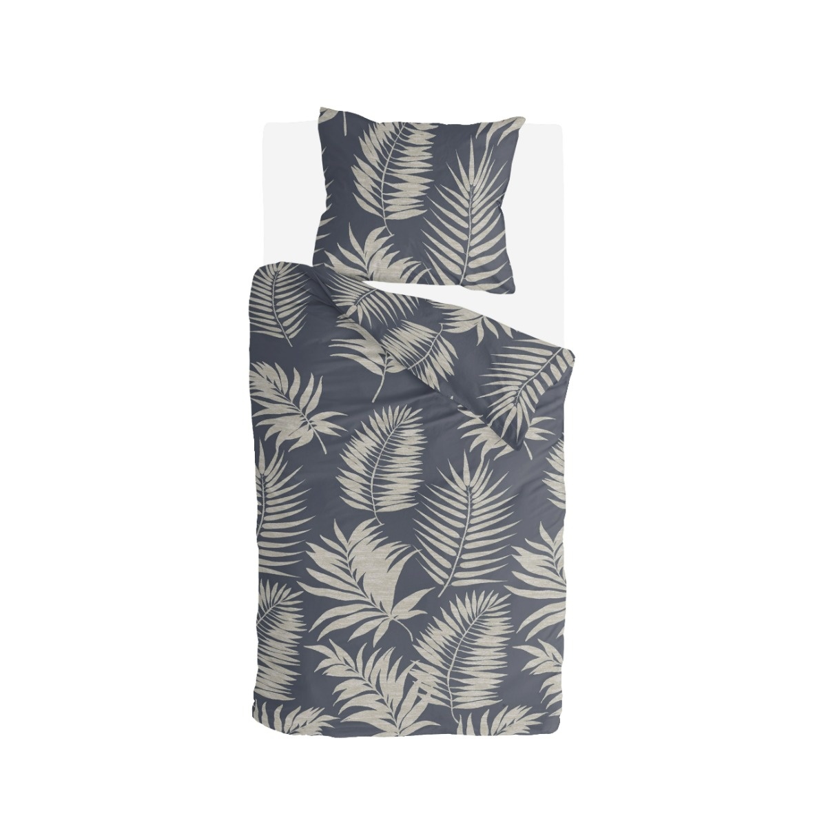 Een sfeervol geheel van palmbladeren komt samen op dit donkerblauw Byrklund dekbedovertrek 'Pretty Palm'. Het dekbedovertrek toont grote grijze bladeren op zowel de voorzijde als de achterzijde. Het patroon loopt ook door op het kussensloop. Dit maakt het een sierlijk geheel en toepasbaar in vele slaapkamers. Gemaakt van 100% katoen een natuurlijk materiaal met een goed ventilatievermogen.