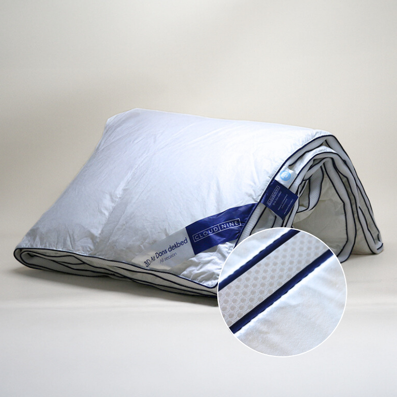 Op zoek naar een dekbed dat het hele jaar door perfect aanvoelt? Ontdek het Dekbed 3D Air Dons - All Season, een hoogwaardig dekbed dat uitblinkt in comfort, ventilatie en warmte-isolatie. Dankzij de unieke 3D-airstructuur en natuurlijke dons vulling geniet je van een luchtig en toch behaaglijk slaapklimaat - in elk seizoen. Natuurlijke dons en 3D-ventilatie: een gouden combinatie De vulling van dit dekbed bestaat uit hoogwaardig dons en veertjes, die samen zorgen voor een uitzonderlijke balans tussen isolatie en luchtigheid. In combinatie met de 3D-airband langs de zijkanten ontstaat een uitstekende luchtcirculatie, waardoor overtollige warmte en vocht snel worden afgevoerd. De tijk is vervaardigd uit ademend katoen-perkal, zacht voor de huid én stevig genoeg voor jarenlang gebruik. Dankzij de speciale cassetteconstructie blijft de vulling gelijkmatig verdeeld, zonder koude zones. All-Season dekbed: geschikt voor elk seizoen Het Dons Katoen All Season Dekbed is ontworpen om je het hele jaar door het juiste slaapklimaat te bieden. Met een warmteklasse tussen 2 en 3 is het ideaal voor alle seizoenen: warm genoeg voor herfst en winter, en luchtig genoeg voor lente en frisse zomernachten. Dankzij de natuurlijke temperatuurregulerende eigenschappen van dons hoef je geen seizoenswissel meer te doen met verschillende dekbedden. Dit dekbed zorgt voor consistent comfort, ongeacht het weer. Geen oververhitting in de zomer, geen kou in de winter - gewoon altijd precies goed. Investeer in rustgevende nachten Met het Dekbed 3D Air Dons - All Season haal je een dekbed in huis dat is ontworpen voor mensen die comfort en kwaliteit waarderen. De combinatie van natuurlijke materialen, slimme constructie en uitstekende temperatuurregulatie maakt dit dekbed tot een absolute must-have voor elke slaapkamer. Gun jezelf het comfort van dons, elke nacht opnieuw. Bestel vandaag nog en ervaar het verschil in slaapkwaliteit! - Bestel nu op Dekbed-Discounter.nl