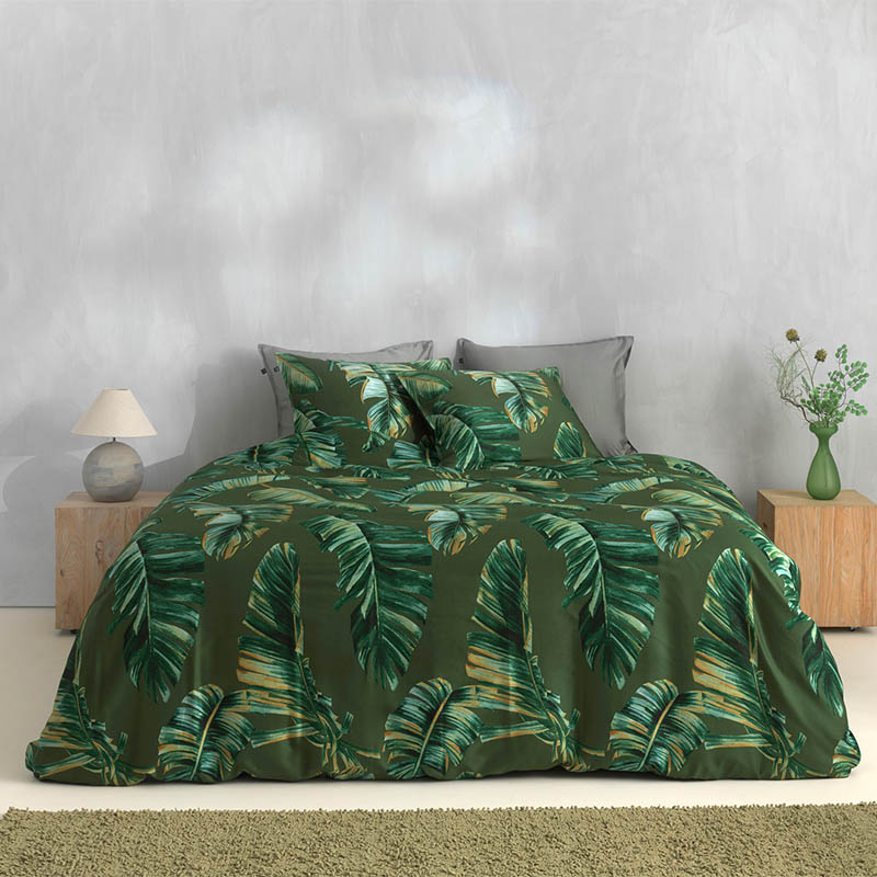 Swirling Botan Leaves! Dwarrelende botanische bladeren in combinatie met de jungle groene achtergrond is een echte eyecatcher op het extra zachte dekbedovertrek Alanzo Green van het trendy merk ZoHome! Het overtrek wordt geleverd met bijpassende kussenslopen voor een prachtige complete set. Materiaal Het dekbedovertrek uit de nieuwe collectie is leverbaar in diverse maten. Dit prachtige dekbedovertrek is gemaakt van katoen-satijn. Door het gebruik van dit materiaal is de overtrekset erg soepel, glad, ademend en geeft het ook een chique glans aan het overtrek. Daarnaast zijn satijnen kussenslopen ook erg goed voor je huid, en haar. Al deze eigenschappen dragen bij aan een goede nachtrust. Maten 1-persoons (140 x 200/220 + 1 kussensloop) 2-persoons (200 x 200/220 + 2 kussenslopen) Lits-jumeaux (240 x 200/220 + 2 kussenslopen) Lits-jumeaux XL (260 x 200/220 + 2 kussenslopen) Instopstrook Dit dekbedovertrek is voorzien van een zogeheten dubbele doorlopende instopstrook en heeft een totale lengte van 220 centimeter. Hierdoor houd je altijd voldoende stof over om je dekbedovertrek stevig in te stoppen aan de onderzijde - óók wanneer je een extra lang dekbed gebruikt of op een wat hoger matras slaapt. Zeg maar dag tegen koude voeten! Wasvoorschrift Wasbaar op 60 °C, eerste twee keer op 40 °C wassen en niet in de droger doen. Matig heet strijken. Drogen in een droogtrommel op een licht programma. Niet met bleekmiddel behandelen. - Bestel nu op Dekbed-Discounter.nl