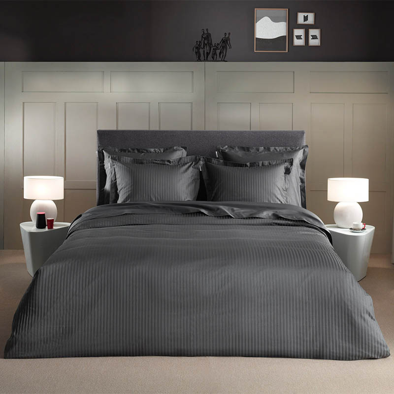 Dekbedovertrek Banda heeft een luxe, chique uitstraling dankzij de jacquard geweven satijnstrepen.