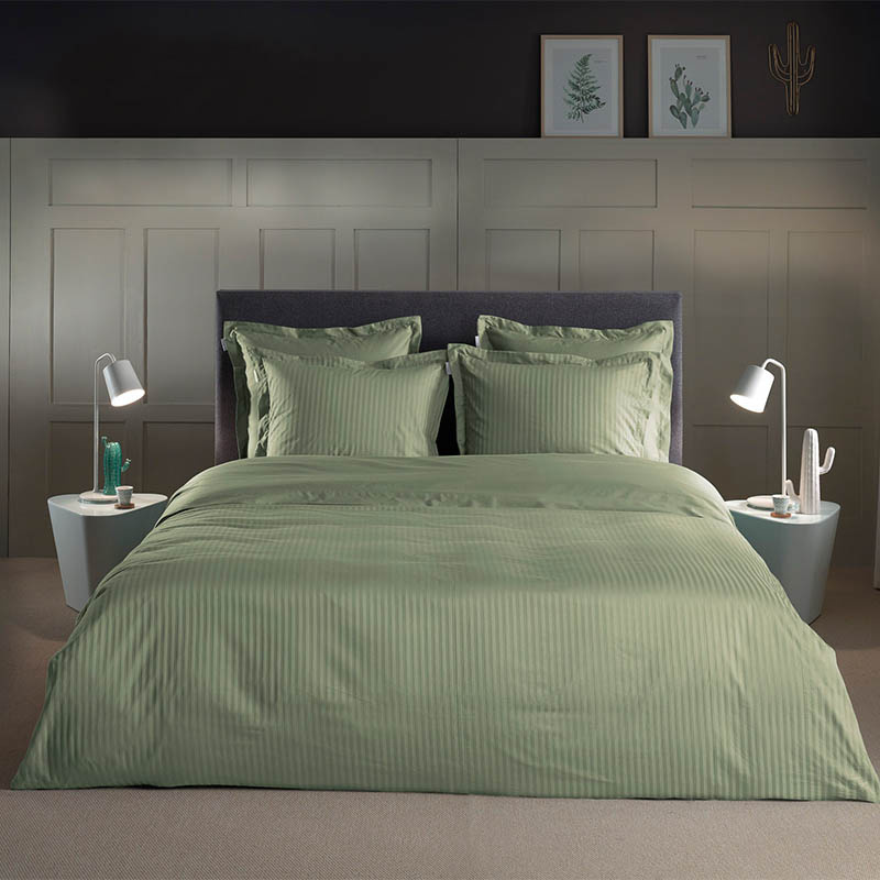 Dekbedovertrek Banda heeft een luxe, chique uitstraling dankzij de jacquard geweven satijnstrepen. Het overtrek wordt geleverd met bijpassende kussenslopen voor een prachtige complete set. Materiaal Dit prachtige dekbedovertrek is gemaakt van 100% katoen-satijn. Katoen-satijn is goed ventilerend en absorberend, fijne eigenschappen die bijdragen aan ultiem slaapcomfort. Maten 1-persoons (140 x 200/220 + 1 kussensloop) 2-persoons (200 x 200/220 + 2 kussenslopen) Lits-jumeaux (240 x 200/220 + 2 kussenslopen) Lits-jumeaux XL (260 x 200/220 + 2 kussenslopen) Instopstrook Dit dekbedovertrek is voorzien van een zogeheten dubbele doorlopende instopstrook en heeft een totale lengte van 220 centimeter. Hierdoor houd je altijd voldoende stof over om je dekbedovertrek stevig in te stoppen aan de onderzijde - óók wanneer je een extra lang dekbed gebruikt of op een wat hoger matras slaapt. Zeg maar dag tegen koude voeten! Wasvoorschrift Wasbaar op 60 °C. Matig heet strijken. Drogen in een droogtrommel op een licht programma. Niet met bleekmiddel behandelen. - Bestel nu op Dekbed-Discounter.nl