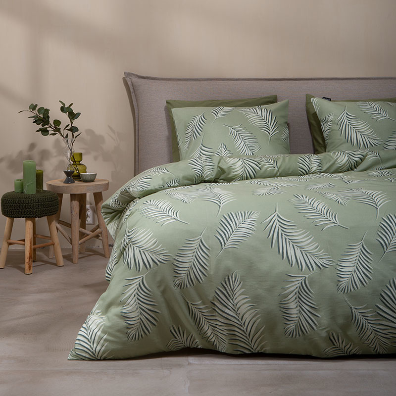 Botanische bladeren zijn helemaal van deze tijd en dit dekbedovertrek staat er vol van! Het is dus echt een toppertje om toe te voegen aan je slaapkamer! Het overtrek wordt geleverd met een bijpassend kussensloop voor een prachtige complete set. Materiaal Dit prachtige dekbedovertrek is gemaakt van polycotton, dit een mix van katoen en polyester. Door het gebruik van dit materiaal is de overtrekset kreukherstellend, ademend en valt deze soepel om je heen. Al deze eigenschappen dragen bij aan een goede nachtrust. Maten 2-persoons (200 x 200/220 + 2 kussenslopen) Instopstrook Dit dekbedovertrek heeft over de gehele breedte een dubbele instopstrook inclusief drukknopen. Wasvoorschrift Wasbaar op 40 °C. Matig heet strijken, tot 150 °C. Drogen in een droogtrommel op een licht programma. Niet met bleekmiddel behandelen. Fresh & Co De dekbedovertrekken van het prachtige merk Fresh En Co zijn perfect voor iedereen die graag een beetje extra luxe in de slaapkamer wil tegen een eerlijke prijs. De designs zijn modern en hebben een frisse, speelse uitstraling. Fresh & Co zorgt ervoor dat je altijd een dekbedovertrek vind die bij je past! - Bestel nu op Dekbed-Discounter.nl