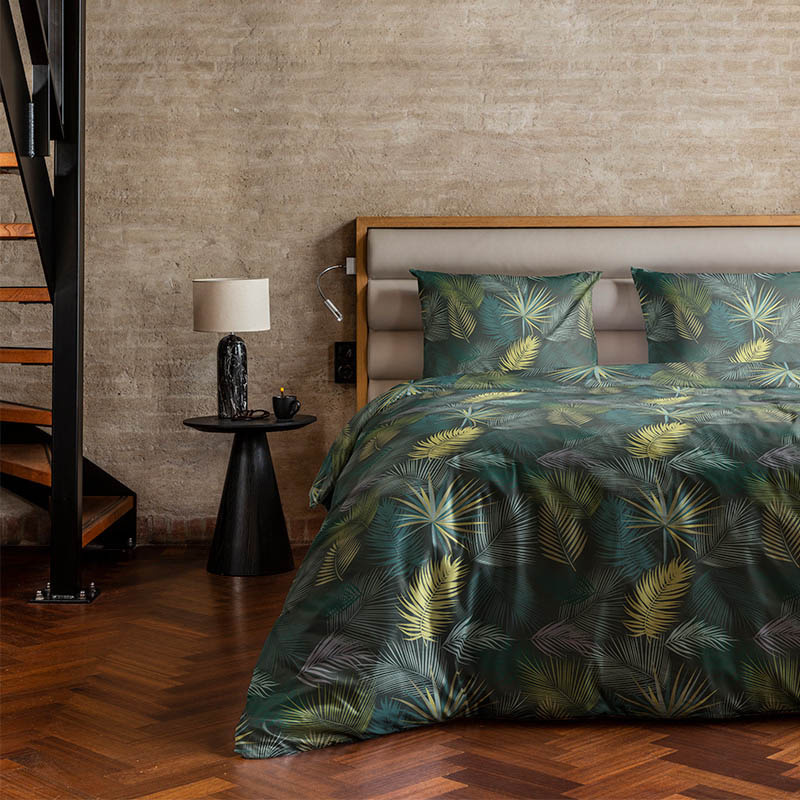Dit dekbedovertrek is een botanisch feestje! Het overtrek staat vol bladeren en heeft een mix van groene en blauwe kleuren! Het overtrek wordt geleverd met een bijpassend kussensloop voor een prachtige complete set. Materiaal Dit prachtige dekbedovertrek is gemaakt van polycotton, dit een mix van katoen en polyester. Door het gebruik van dit materiaal is de overtrekset kreukherstellend, ademend en valt deze soepel om je heen. Al deze eigenschappen dragen bij aan een goede nachtrust. Instopstrook Dit dekbedovertrek heeft over de gehele breedte een dubbele instopstrook inclusief drukknopen. Wasvoorschrift Wasbaar op 40 °C. Matig heet strijken, tot 150 °C. Drogen in een droogtrommel op een licht programma. Niet met bleekmiddel behandelen. Fresh & Co De dekbedovertrekken van het prachtige merk Fresh En Co zijn perfect voor iedereen die graag een beetje extra luxe in de slaapkamer wil tegen een eerlijke prijs. De designs zijn modern en hebben een frisse, speelse uitstraling. Fresh & Co zorgt ervoor dat je altijd een dekbedovertrek vind die bij je past! - Bestel nu op Dekbed-Discounter.nl
