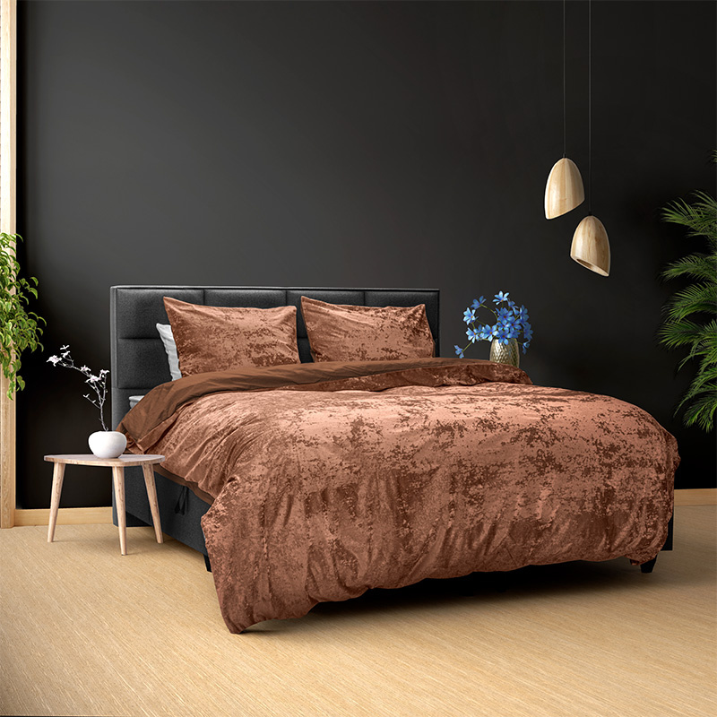 Jouw slaapkamer is natuurlijk een van de plaatsen in huis waar je een rustige, luxe sfeer naar voren wil laten komen. Velvet stof is een zachte en rijke stof dat zorgt voor een luxueuze uitstraling. Het is ook wel bekend onder de naam velours of fluweel stof. Materiaal Dit prachtige dekbedovertrek is gemaakt van 100% katoen. Door het gebruik van dit materiaal is het dekbedovertrek kreukherstellend, licht van gewicht en valt deze soepel om je heen. Al deze eigenschappen dragen bij aan een goede nachtrust. Maten 1-persoons ( 140 x 220 + 1 kussensloop) 2-persoons (200 x 220 + 2 kussenslopen) Lits-jumeaux (240 x 220 + 2 kussenslopen) Instopstrook Dit dekbedovertrek heeft een extra lengte over de gehele breedte en een dubbele instopstrook inclusief drukknopen. Wasvoorschrift Wasbaar op 40 °C. Niet strijken Drogen in een droogtrommel op een licht programma. Niet met bleekmiddel behandelen. - Bestel nu op Dekbed-Discounter.nl