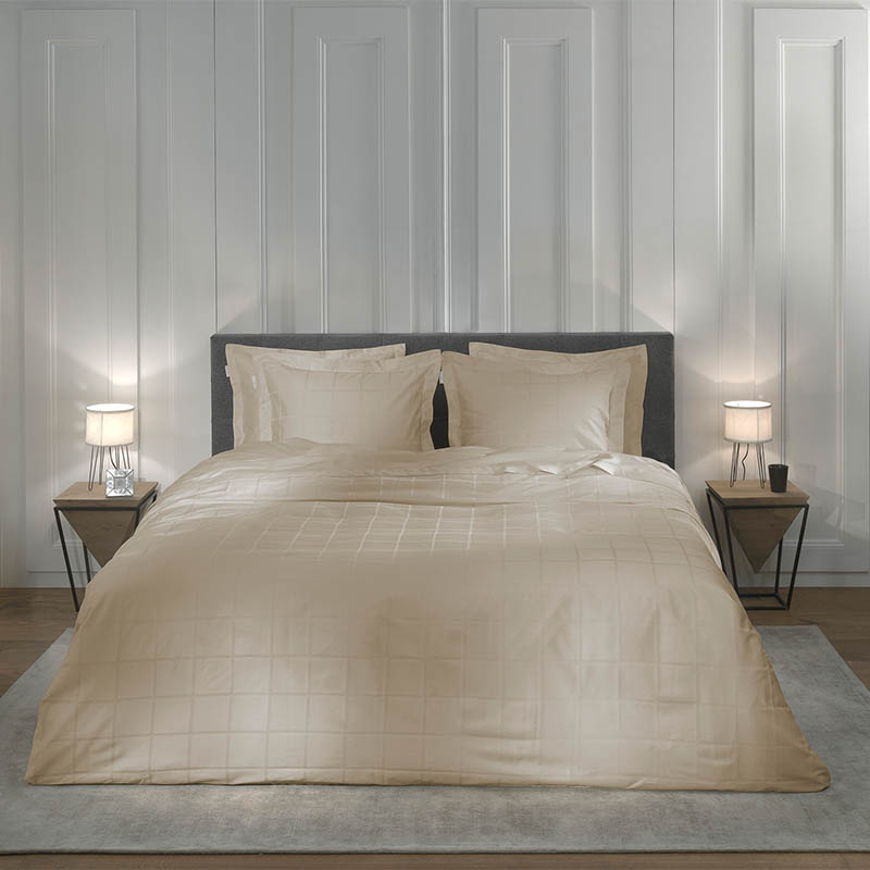 Dekbedovertrek Diamante is dé basic voor in jouw slaapkamer! Het stijlvolle ruitpatroon geeft de kamer een moderne touch en is eenvoudig te stylen met de rest van je interieur! Het overtrek wordt geleverd met bijpassende kussenslopen voor een prachtige complete set. Materiaal Dit prachtige dekbedovertrek is gemaakt van 100% katoen-satijn. Katoen-satijn is goed ventilerend en absorberend, fijne eigenschappen die bijdragen aan ultiem slaapcomfort. Maten 1-persoons (140 x 200/220 + 1 kussensloop) 2-persoons (200 x 200/220 + 2 kussenslopen) Lits-jumeaux (240 x 200/220 + 2 kussenslopen) Lits-jumeaux XL (260 x 200/220 + 2 kussenslopen) Instopstrook Dit dekbedovertrek is voorzien van een zogeheten dubbele doorlopende instopstrook en heeft een totale lengte van 220 centimeter. Hierdoor houd je altijd voldoende stof over om je dekbedovertrek stevig in te stoppen aan de onderzijde - óók wanneer je een extra lang dekbed gebruikt of op een wat hoger matras slaapt. Zeg maar dag tegen koude voeten! Wasvoorschrift Wasbaar op 60 °C. Matig heet strijken. Drogen in een droogtrommel op een licht programma. Niet met bleekmiddel behandelen. - Bestel nu op Dekbed-Discounter.nl