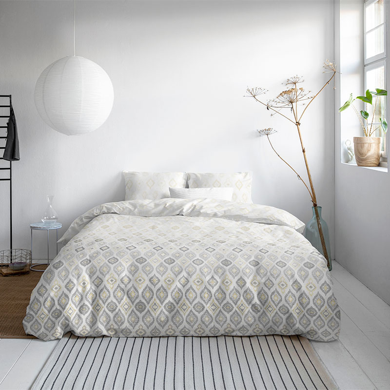 Een mooi dekbedovertrek is nooit verkeerd! Het overtrek heeft een subtiel printje. Zo heb je een niet te drukke, maar toch sfeervolle toevoeging aan je slaapkamer! Het overtrek wordt geleverd met bijpassende kussenslopen voor een prachtige complete set. Materiaal Dit prachtige dekbedovertrek is gemaakt van katoen-satijn. Deze katoensoort heeft een speciale weving ondergaan waardoor het overtrek zachter en gladder aanvoelt dan een normaal katoenen overtrek; dit wordt satijn genoemd. Bovendien blijven de kleuren op katoen-satijn langer mooi en heeft je overtrek een chique glans. Ook is het overtrek ademend en valt het lekker soepel om je heen. Al deze eigenschappen dragen bij aan een goede nachtrust. Maten 1-persoons (140 x 200/220 + 1 kussensloop) 2-persoons (200 x 200/220 + 2 kussenslopen) Lits-jumeaux (240 x 200/220 + 2 kussenslopen) Instopstrook Dit dekbedovertrek heeft over de gehele breedte een dubbele instopstrook inclusief drukknopen. Wasvoorschrift Wasbaar op 40 °C. Matig heet strijken, tot 150 °C. Drogen in een droogtrommel op een licht programma. Niet met bleekmiddel behandelen. Dreamhouse Dreamhouse is de specialist in luxe, het is een merk waarmee je kiest voor pure warmte en ontspanning. Je kunt er heerlijk onder in slaap vallen, terwijl de slaapkamer er tevens bijzonder stijlvol uitziet op het moment dat je er geen gebruik van maakt. Dreamhouse heeft als merk een uitstekende naam neer weten te zetten en zorgt er met de mooie ontwerpen en de materialen van goede kwaliteit voor dat het in de slaapkamer een goede keuze vormt. - Bestel nu op Dekbed-Discounter.nl