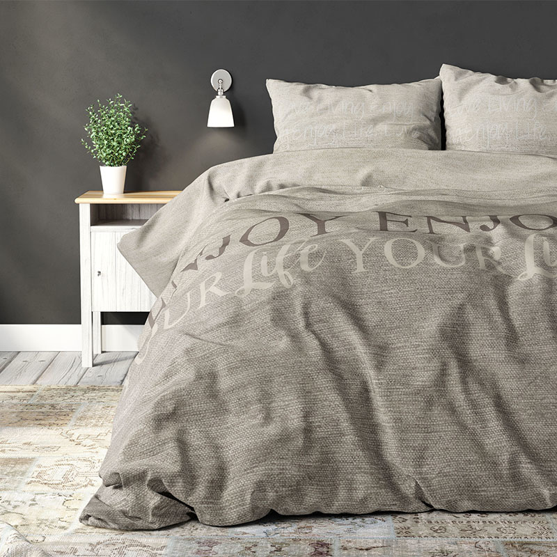 Je vindt de meest actuele en laagste prijzen voor Dekbedovertrek Enjoy Life Dekbedovertrek - Tweepersoons (200x220 cm) - Taupe Polyester-katoen - Dessin: Tekst, Patroon - Sleeptime Elegance - op onze website. Check de productpagina voor de huidige beste deals van verschillende aanbieders..
