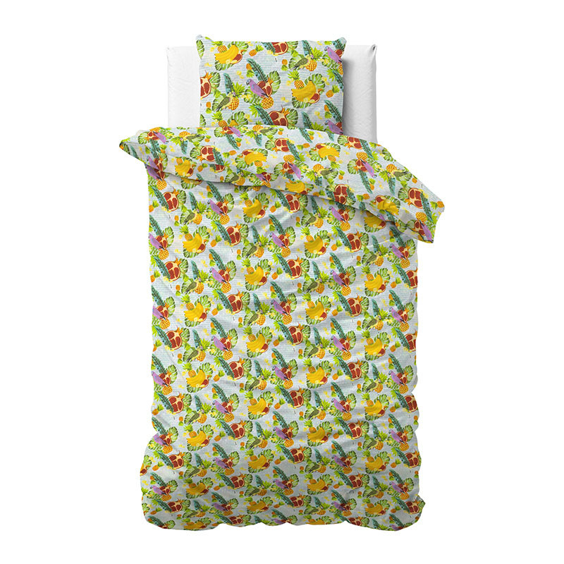 Als fruit je favoriete snack is, dan is dit overtrek een perfecte match voor jou! Het overtrek wordt geleverd met bijpassende kussenslopen voor een prachtige complete set. Materiaal Dit prachtige dekbedovertrek is gemaakt van polycotton, dit een mix van katoen en polyester. Door het gebruik van dit materiaal is de overtrekset kreukherstellend, ademend en valt deze soepel om je heen. Al deze eigenschappen dragen bij aan een goede nachtrust. Maten 1-persoons (140 x 220 + 1 kussensloop) 2-persoons (200 x 220 + 2 kussenslopen) Lits-jumeaux (240 x 220 + 2 kussenslopen) Instopstrook Dit dekbedovertrek heeft over de gehele breedte een dubbele instopstrook inclusief drukknopen. Wasvoorschrift Wasbaar op 40 °C. Drogen in een droogtrommel op een licht programma. Niet met bleekmiddel behandelen. - Bestel nu op Dekbed-Discounter.nl