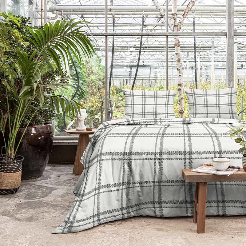 Dit dekbedovertrek geeft een moderne en frisse uitstraling. Je kunt het eindeloos combineren! Het overtrek wordt geleverd met bijpassende kussenslopen voor een prachtige complete set. Materiaal Dit prachtige dekbedovertrek is gemaakt van 70% gerecycled katoen en 30% virgin katoen. Door het gebruik van dit materiaal is de overtrekset ademend, stevig, vochtregulerend en erg zacht. Al deze eigenschappen dragen bij aan een goede nachtrust. Maten 1-persoons (140 x 200/240 + 1 kussensloop) 2-persoons (200 x 200/240 + 2 kussenslopen) Lits-jumeaux (240 x 200/240 + 2 kussenslopen) Instopstrook Koop je een dekbedovertrek van Origins dan krijg je veel waar voor je geld. Origins dekbedovertrekken zijn voorzien van een zogeheten dubbele doorlopende instopstrook en hebben een totale lengte van 240 centimeter. Hierdoor houd je altijd voldoende stof over om je dekbedovertrek stevig in te stoppen aan de onderzijde - óók wanneer je een extra lang dekbed gebruikt of op een wat hoger matras slaapt. Zeg maar dag tegen koude voeten! Wasvoorschrift Wasbaar op 40 °C. Matig heet strijken, tot 150 °C. Drogen in een droogtrommel op een licht programma. Niet met bleekmiddel behandelen. Origins Origins is daadwerkelijk een prachtig merk. Het merk produceert hoge kwaliteit artikelen van gerecycled materiaal voor een eerlijke prijs. Zo kan iedereen, met een grote of kleine portemonnee, heerlijk genieten en bijdragen aan een betere wereld. Daarnaast is Origins exclusief bij Dekbed-Discounter te vinden! - Bestel nu op Dekbed-Discounter.nl