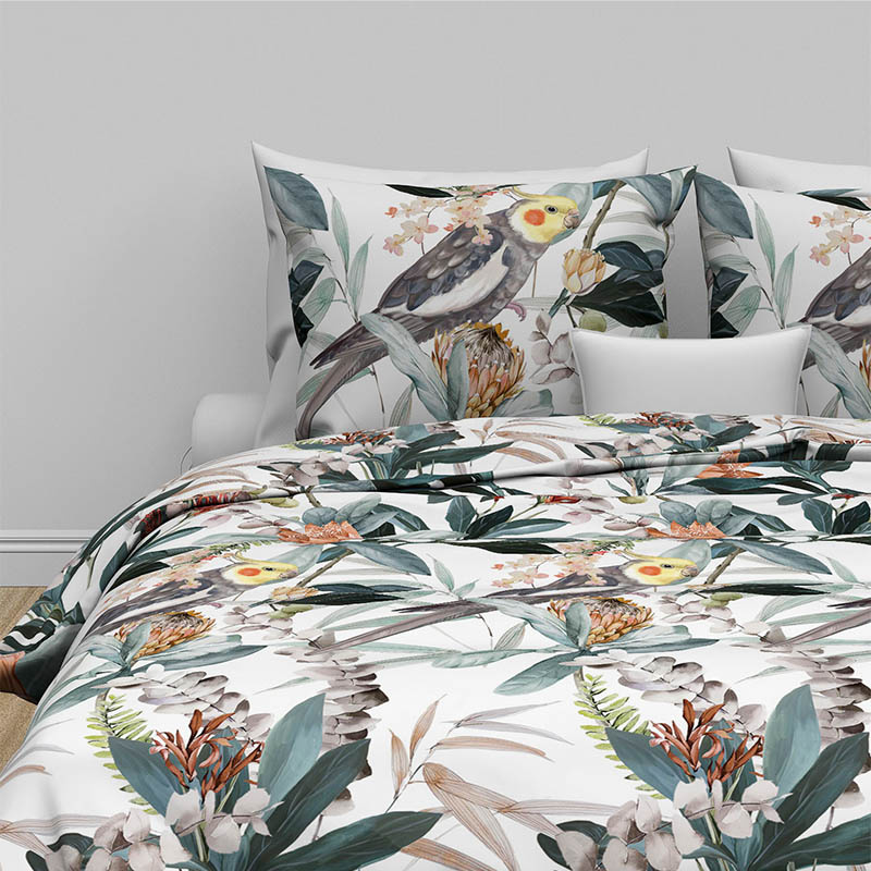 Dit trendy Zo!Home dekbedovertrek is een echte eyecatcher in je slaapkamer. Het heeft een print met bladeren en valkparkietjes op een frisse witte achtergrond. Het overtrek wordt geleverd met bijpassende kussenslopen voor een prachtige complete set. Materiaal Dit prachtige dekbedovertrek is gemaakt van 100% katoen. Door het gebruik van dit materiaal is de overtrekset ademend, stevig, vochtregulerend en erg zacht. Al deze eigenschappen dragen bij aan een goede nachtrust. Maten 1-persoons (140 x 200/220 + 1 kussensloop) 2-persoons (200 x 200/220 + 2 kussenslopen) Lits-jumeaux (240 x 200/220 + 2 kussenslopen) Lits-jumeaux XL (260 x 200/220 + 2 kussenslopen) Instopstrook Dit dekbedovertrek is voorzien van een zogeheten dubbele doorlopende instopstrook en heeft een totale lengte van 220 centimeter. Hierdoor houd je altijd voldoende stof over om je dekbedovertrek stevig in te stoppen aan de onderzijde - óók wanneer je een extra lang dekbed gebruikt of op een wat hoger matras slaapt. Zeg maar dag tegen koude voeten! Wasvoorschrift Wasbaar op 40 °C. Matig heet strijken, tot 150 °C. Drogen in een droogtrommel op een licht programma. Niet met bleekmiddel behandelen. - Bestel nu op Dekbed-Discounter.nl