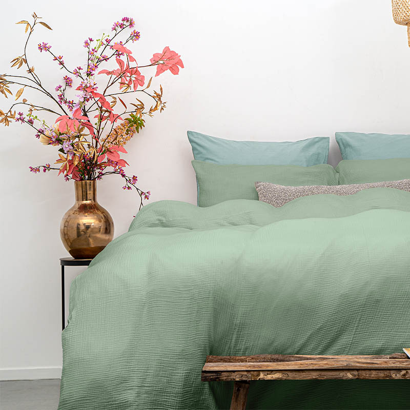Voeg een unieke touch toe aan jouw slaapkamer met dit mousseline dekbedovertrek, twee luchtig geweven katoen met een licht kreukeleffect die je niet hoeft te strijken
