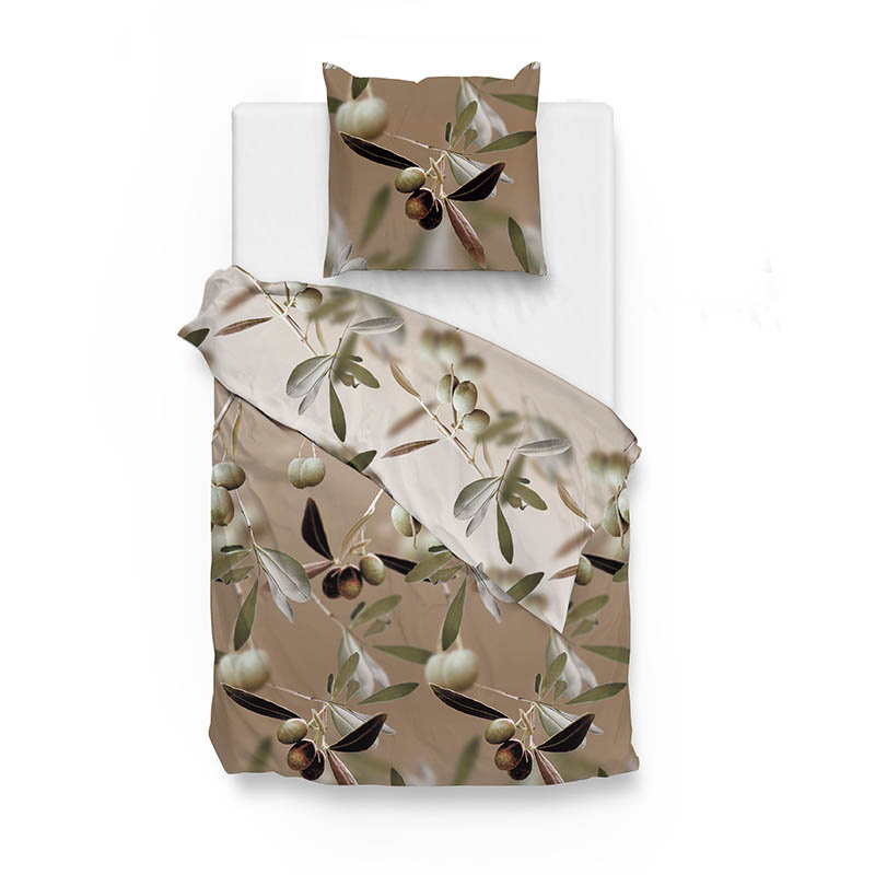 Dekbedovertrek Mylie heeft een fraaie print met olijftakken met groene olijven. Het Zo!Home overtrek geeft jouw slaapkamer een mediterrane sfeer. Het overtrek wordt geleverd met bijpassende kussenslopen voor een prachtige complete set. Materiaal Dit prachtige dekbedovertrek is gemaakt van 100% katoen. Door het gebruik van dit materiaal is de overtrekset ademend, stevig, vochtregulerend en erg zacht. Al deze eigenschappen dragen bij aan een goede nachtrust. Maten 1-persoons (140 x 200/220 + 1 kussensloop) 2-persoons (200 x 200/220 + 2 kussenslopen) Lits-jumeaux (240 x 200/220 + 2 kussenslopen) Lits-jumeaux XL (260 x 200/220 + 2 kussenslopen) Instopstrook Dit dekbedovertrek is voorzien van een zogeheten dubbele doorlopende instopstrook en heeft een totale lengte van 220 centimeter. Hierdoor houd je altijd voldoende stof over om je dekbedovertrek stevig in te stoppen aan de onderzijde - óók wanneer je een extra lang dekbed gebruikt of op een wat hoger matras slaapt. Zeg maar dag tegen koude voeten! Wasvoorschrift Wasbaar op 40 °C. Matig heet strijken, tot 150 °C. Drogen in een droogtrommel op een licht programma. Niet met bleekmiddel behandelen. - Bestel nu op Dekbed-Discounter.nl