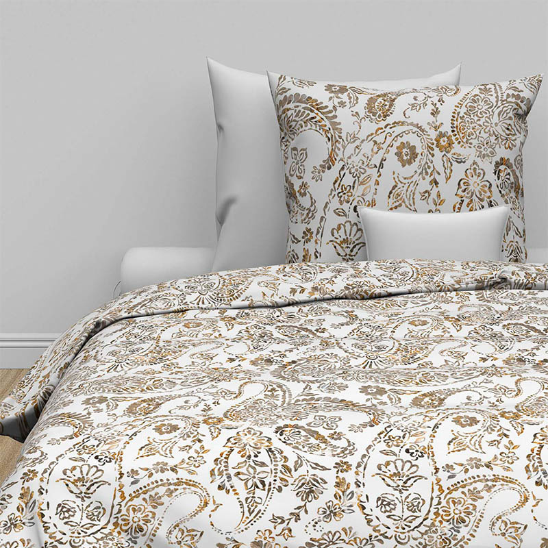 Dekbedovertrek Perla heeft een paisley print en past goed bij een bohemian chique of vintage interieur. Het overtrek wordt geleverd met bijpassende kussenslopen voor een prachtige complete set. Materiaal Het dekbedovertrek uit de nieuwe collectie is leverbaar in diverse maten. Dit prachtige dekbedovertrek is gemaakt van katoen-satijn. Door het gebruik van dit materiaal is de overtrekset erg soepel, glad, ademend en geeft het ook een chique glans aan het overtrek. Daarnaast zijn satijnen kussenslopen ook erg goed voor je huid, en haar. Al deze eigenschappen dragen bij aan een goede nachtrust. Maten 1-persoons (140 x 200/220 + 1 kussensloop) 2-persoons (200 x 200/220 + 2 kussenslopen) Lits-jumeaux (240 x 200/220 + 2 kussenslopen) Lits-jumeaux XL (260 x 200/220 + 2 kussenslopen) Instopstrook Dit dekbedovertrek is voorzien van een zogeheten dubbele doorlopende instopstrook en heeft een totale lengte van 220 centimeter. Hierdoor houd je altijd voldoende stof over om je dekbedovertrek stevig in te stoppen aan de onderzijde - óók wanneer je een extra lang dekbed gebruikt of op een wat hoger matras slaapt. Zeg maar dag tegen koude voeten! Wasvoorschrift Wasbaar op 60 °C, eerste twee keer op 40 °C wassen en niet in de droger doen. Matig heet strijken. Drogen in een droogtrommel op een licht programma. Niet met bleekmiddel behandelen. - Bestel nu op Dekbed-Discounter.nl