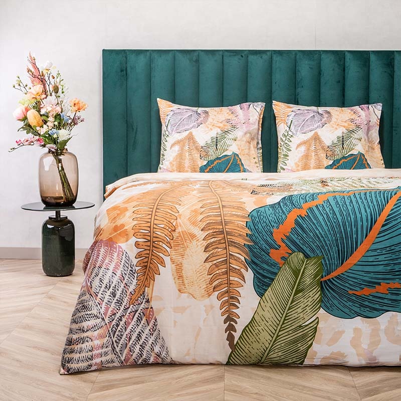 Met dit prachtig gekleurde overtrek voorzie jij je slaapkamer van wat extra sfeer en stijl. De combinatie van kleuren die terugkomen op dit overtrek samen met de zorgvuldig uitgekozen prints zorgt voor een stijlvol geheel. Het overtrek wordt geleverd met bijpassende kussenslopen voor een prachtige complete set. Materiaal Dit prachtige dekbedovertrek is gemaakt van 100% katoensatijn en heeft een speciale weving ondergaan waardoor het overtrek zachter en gladder aanvoelt dan een normaal katoenen overtrek; dit wordt een satijn weving genoemd. Bovendien blijven de kleuren op dit materiaal langer mooi en heeft je overtrek een chique glans. Ook is het overtrek ademend en valt het lekker soepel om je heen. Al deze eigenschappen dragen bij aan een goede nachtrust. Maten 1-persoons (140 x 220 + 1 kussensloop) 2-persoons (200 x 220 + 2 kussenslopen) Lits-jumeaux (240 x 220 + 2 kussenslopen) Instopstrook De instopstrook is over de gehele breedte van het dekbedovertrek inclusief drukknopen. Wasvoorschrift Wasbaar op 40 °C. Drogen in een droogtrommel op een licht programma. Niet met bleekmiddel behandelen. Manilla Dekbedovertrekken van het merk Manilla zorgen voor een warme en huiselijke sfeer in je slaapkamer. Op zoek naar een mooi nieuw dekbedovertrek en er daarmee voor zorgen dat je het interieur van de slaapkamer kunt verrijken? Een dekbedovertrek van Manilla vormt dan een uitstekende keuze. - Bestel nu op Dekbed-Discounter.nl