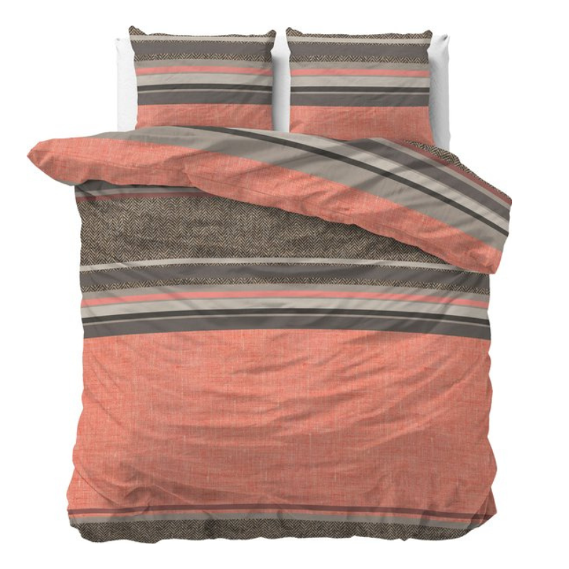 Onder dit warme Sleeptime Elegance Sonta-dekbedovertrek geniet je ongestoord van je nachtrust. Het heeft een stijlvol strependessin in kleuren die mooi bij elkaar passen en die goed te combineren zijn in diverse woonstijlen. De print is aan beide zijden verwerkt en komt ook terug in het kussensloop. Dit dekbedovertrek heeft een totale lengte van 220 cm en kan met de handige drukknopen aan de onderzijde worden afgesloten. Gemaakt van polykatoen Dekbedovertrek Elegance Sonta van Sleeptime is gemaakt van kwalitatief materiaal dat tal van positieve eigenschappen heeft. Het is namelijk gemaakt van 80% katoen en 20% polyester. Door de combinatie van deze materiaalsoorten voelt het overtrek lekker zacht en soepel aan en is daarnaast ook warmteregulerend. Het droogt ook snel, kreukt weinig en gaat jaren mee. Een dekbedovertrek met dubbele, doorlopende instopstrook. Maten 1-persoons (140 x 200/220 + 1 kussensloop) 2-persoons (200 x 200/220 + 2 kussenslopen) Lits-jumeaux (240 x 200/220 + 2 kussenslopen) Instopstrook Dit dekbedovertrek heeft over de gehele breedte een dubbele instopstrook inclusief drukknopen. Wasvoorschrift Wasbaar op 40 °C. Drogen in een droogtrommel op een licht programma. Niet met bleekmiddel behandelen. Sleeptime Elegance Op tijd naar bed gaan is geen straf meer! Met de dekbedovertrekken van Sleeptime Elegance geniet je optimaal van je nachtrust en krijg je nieuwe energie om de dag weer met een glimlach tegemoet te gaan. De overtrekken van Sleeptime Elegance zijn gevarieerd en hebben voor iedere slaapkamer een passende dekbedovertrekset. - Bestel nu op Dekbed-Discounter.nl