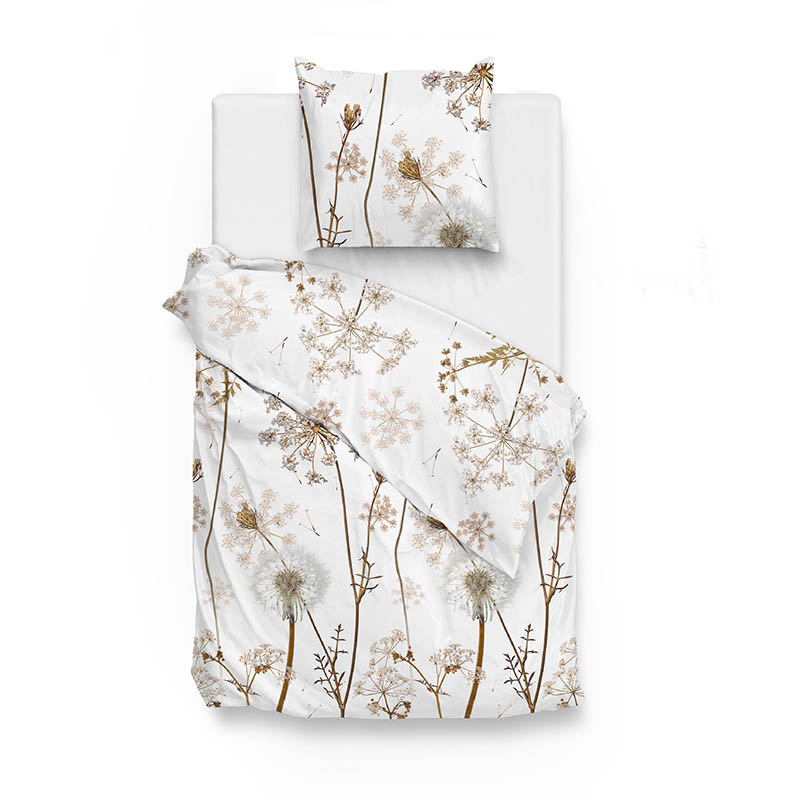 Met dekbedovertrek Willa breng je de natuur naar je slaapkamer. Dit Zo!Home overtrek heeft een print met paardenbloemen en fluitenkruid in bruintinten op een frisse witte achtergrond.