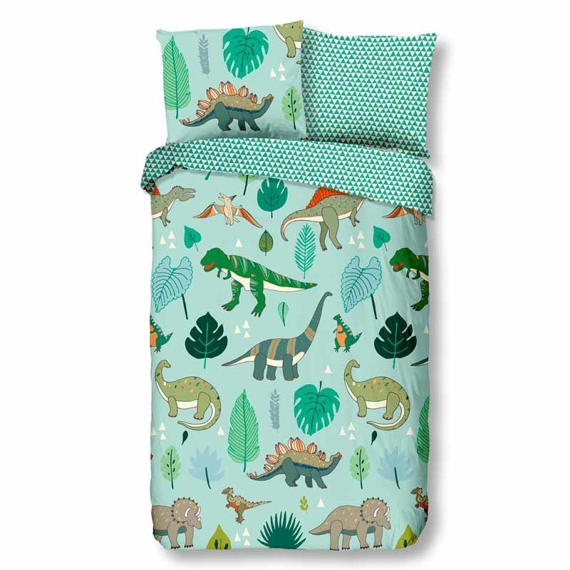 Ga jij geen enkel avontuur uit de weg? Dit stoere dekbedovertrek heeft een print van allerlei dino's. Hoeveel dino's kun jij tellen? Het overtrek wordt geleverd met een bijpassend kussensloop voor een prachtige complete set. Materiaal Dit prachtige dekbedovertrek is gemaakt van 100% katoen. Door het gebruik van dit materiaal is de overtrekset ademend, stevig, vochtregulerend en erg zacht. Al deze eigenschappen dragen bij aan een goede nachtrust. Instopstrook Dit dekbedovertrek is voorzien vaan een dubbele instopstrook over de volledige breedte. Maten 1-persoons (140 x 200/220 + 1 kussensloop) Wasvoorschrift Wasbaar op 40 °C. Matig heet strijken, tot 150 °C. Drogen in een droogtrommel op een licht programma. Niet met bleekmiddel behandelen. Good Morning Dekbedovertrekken van het merk Good Morning zijn gemaakt van de beste kwaliteit katoen of katoen-satijn. Good Morning staat bekend om de mooie prints, patronen en soepele kwaliteit. Zo is er voor iedereen wel een dekbedovertrek voor in de slaapkamer. Keuze genoeg! - Bestel nu op Dekbed-Discounter.nl