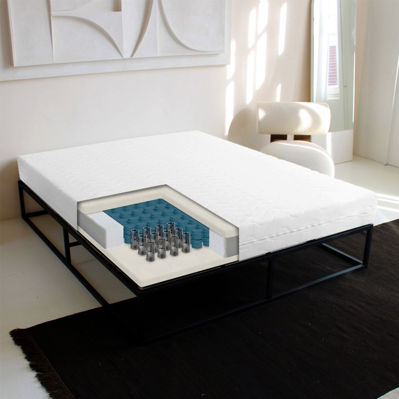 Met het Matras Micro Motion - Pocketvering bieden we een matras die speciaal is ontworpen om te voldoen aan de behoeften van iedere slaper. Met een combinatie van hoogwaardige materialen en innovatieve technologie zorgt dit matras voor optimaal comfort en ondersteuning, zodat je iedere nacht geniet van een ontspannen, herstellende slaap.