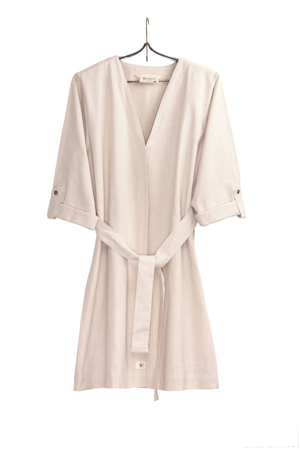De mooie structuur geeft het pure katoen de natuurlijke uitstraling van linnen. Deze voelt door een speciale behandeling heerlijk zacht. Een zomerse musthave ideaal voor naar de sauna op het strand of gewoon lekker voor thuis. Draag de ceintuur extra hoog voor een accent op je vrouwelijke vormen of normaal in je taille. Rol je de mouwen op zet deze dan vast met het knoopje. Dit damesmodel met een lengte tot boven de knie is verkrijgbaar in de maten S/M en L/XL. Kies je voor de naturel uitstraling van de kleur kiezel of voor het trendy vergrijsd blauw? Kwaliteit: 100% katoenWasinstructie: 40 graden Celsius. Drogen met droogtrommel mogelijk.