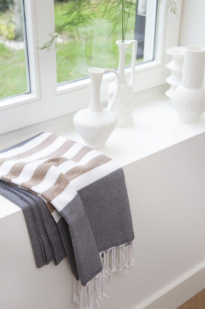 Deze stijlvolle hamamdoek met streepmotief is gemaakt van 100% katoen is heerlijk licht en heeft een royale afmeting. De doek is ideaal voor de sauna of om mee te nemen naar het strand. De verfijnde herringbone structuur geeft de fouta een unieke uitstraling. Uitgevoerd in natuurlijk materiaal van optimale kwaliteit heerlijk licht maar super stevig. De fouta is afgewerkt met franjes die je helemaal aan het zomerseizoen doet denken. 100% katoen. 100x180 cm