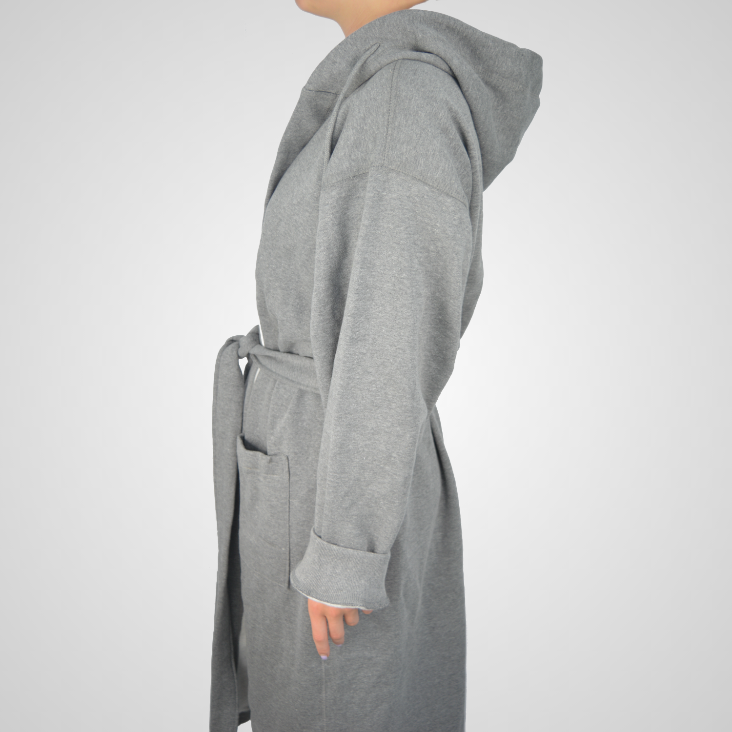 Laat u omhullen door de warmte en het comfort van onze luxe grijze hotel badjas met capuchon. Gemaakt in Spanje. biedt deze badjas de perfecte combinatie van Europese vakmanschap en hedendaags design. De badjas is bestaat uit 80% katoen en 20% polyester.